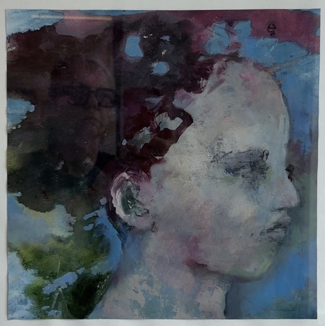 Charcoal, acrylic and oil on canvas. Mounted in a 40x40cm passepartout.