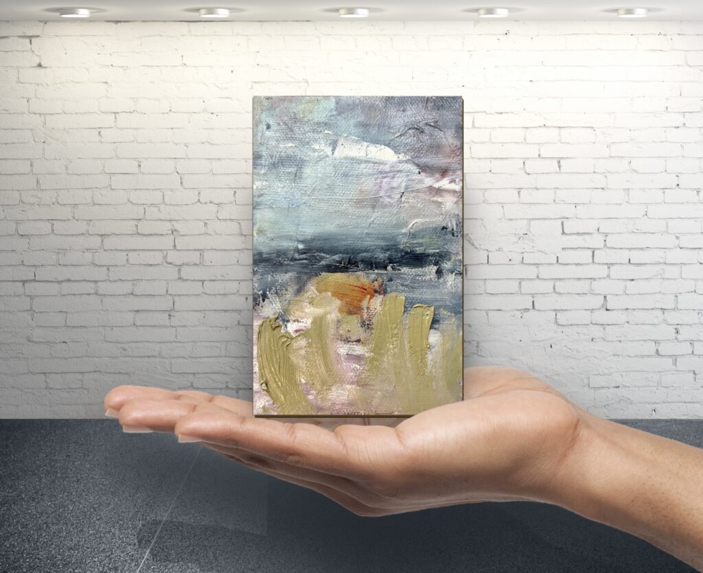 Acrylic paint and/or oil paint on canvas mounted on a woodpanel for a flexible and cool presentation of one or more artworks directly on your wall.