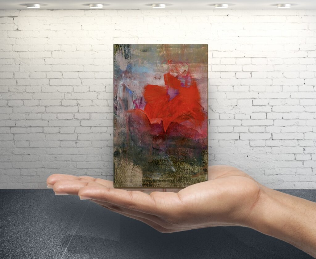 Acrylic paint and/or oil paint on canvas mounted on a woodpanel for a flexible and cool presentation of one or more artworks directly on your wall.
